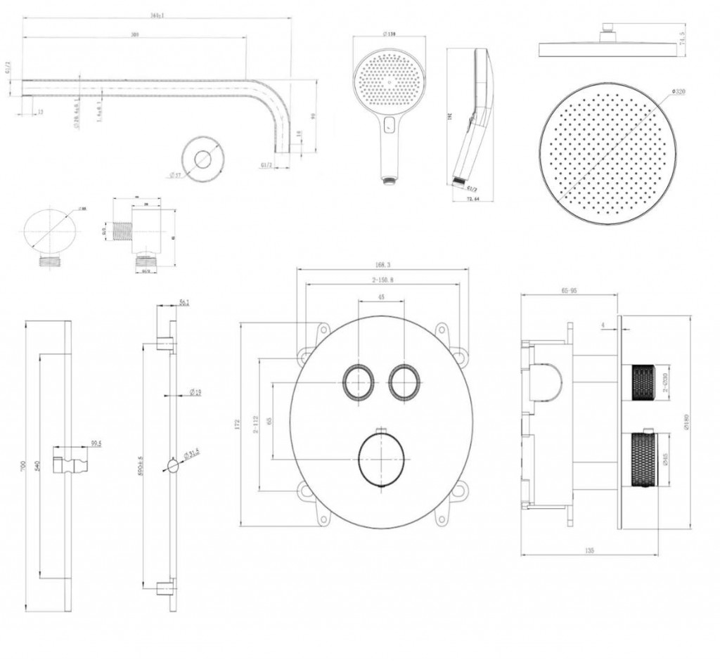 horní sprchu 320 mm se sprchovým ramenem 350 mm