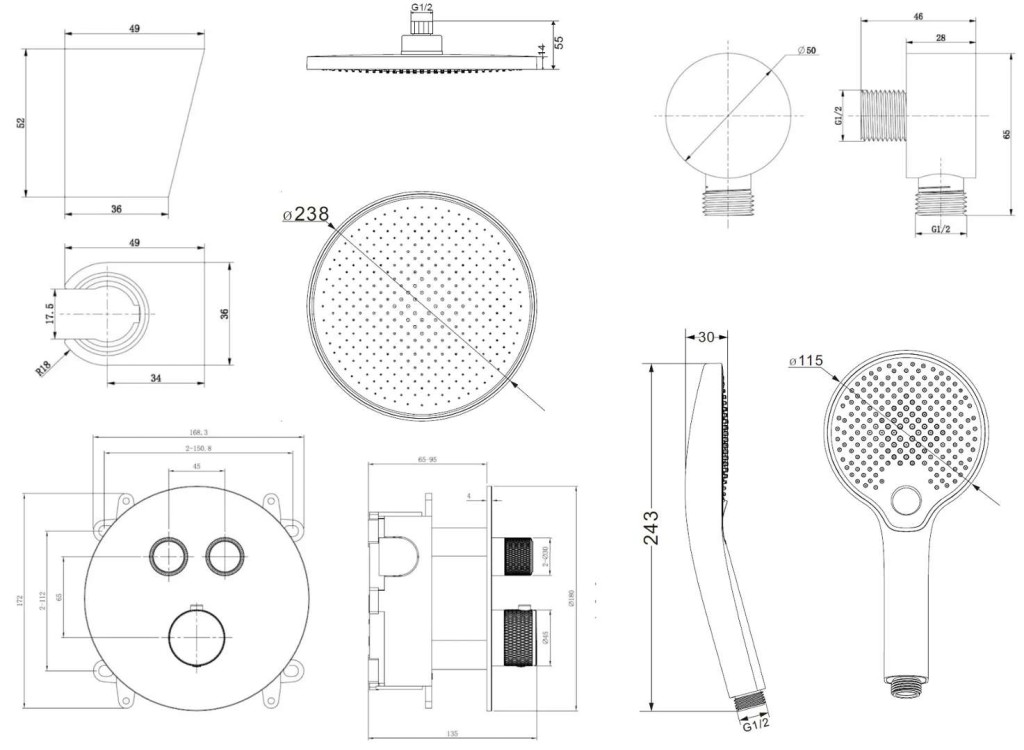 horní sprchu 238 mm se sprchovým ramenem 350 mm