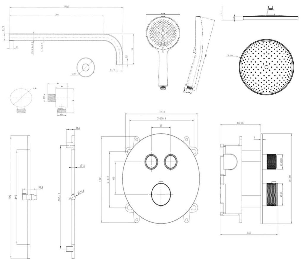 horní sprchu 300 mm se sprchovým ramenem 350 mm