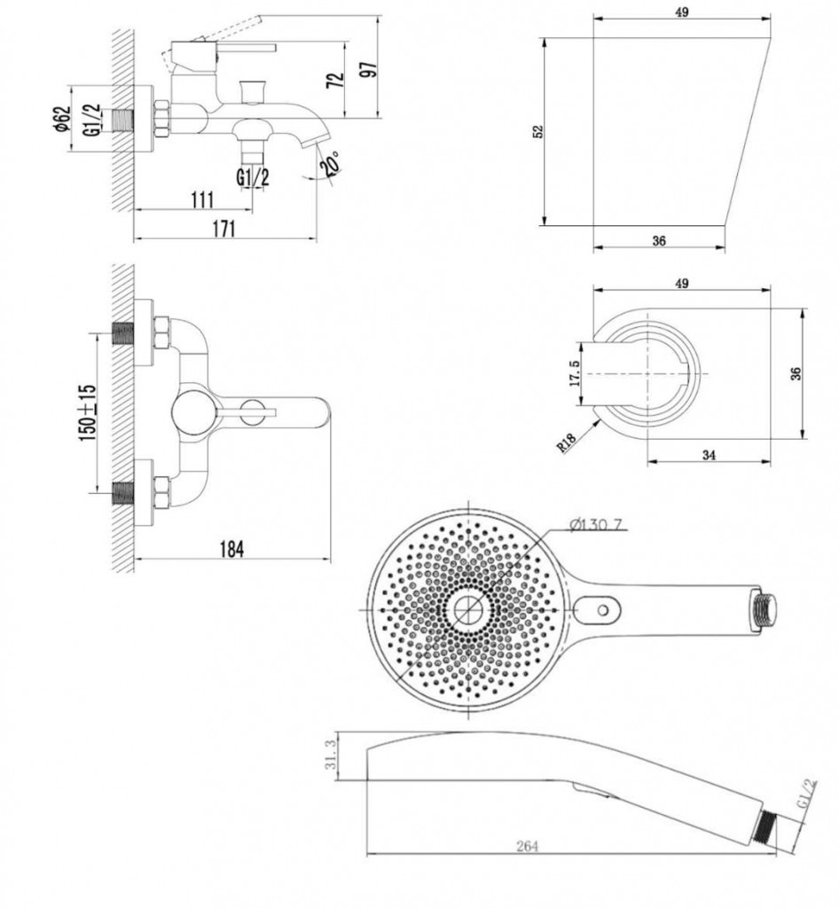 nástěnný držák sprchy