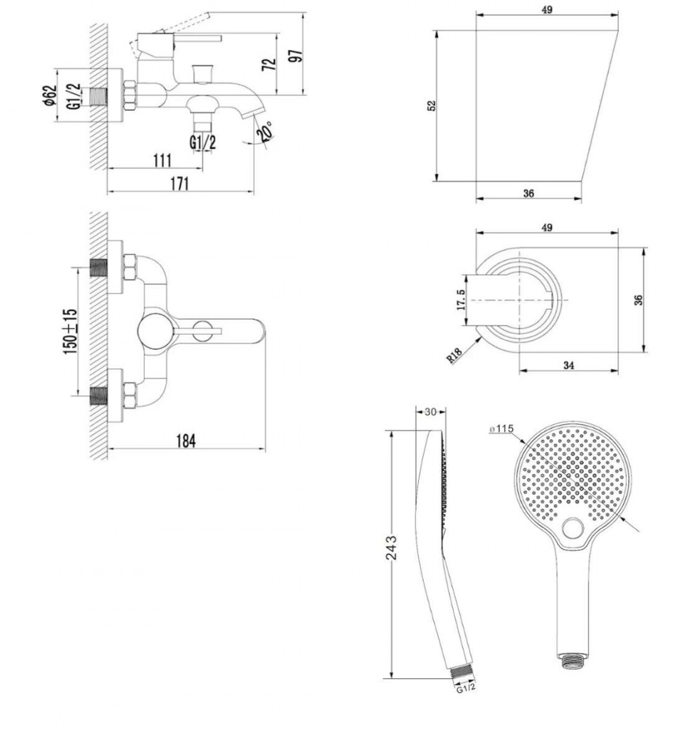 nástěnný držák sprchy