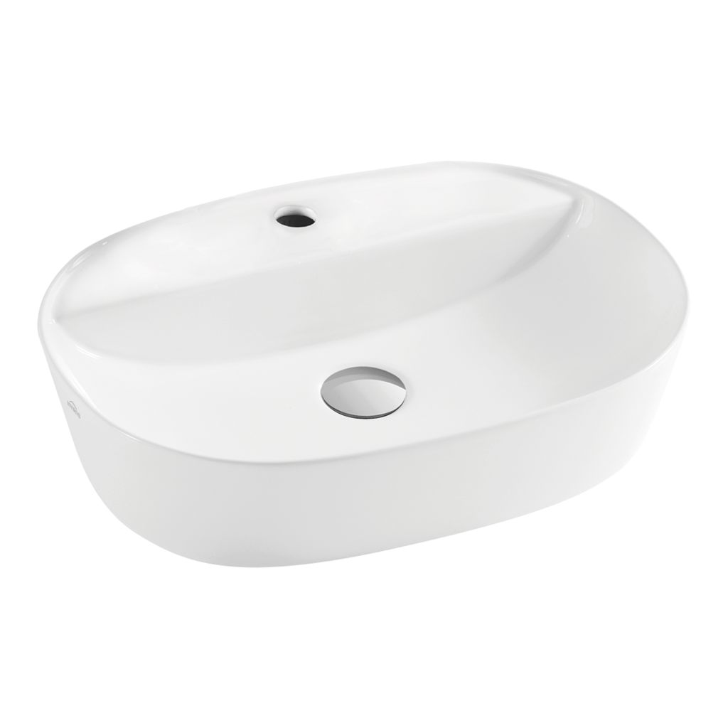 Umyvadlo na desku Halia s odkládacím prostorem u otvoru pro baterii, která vám dává široké možnosti na odkládání pro nezbytnou kosmetiku, která by měla být vždy po ruce.