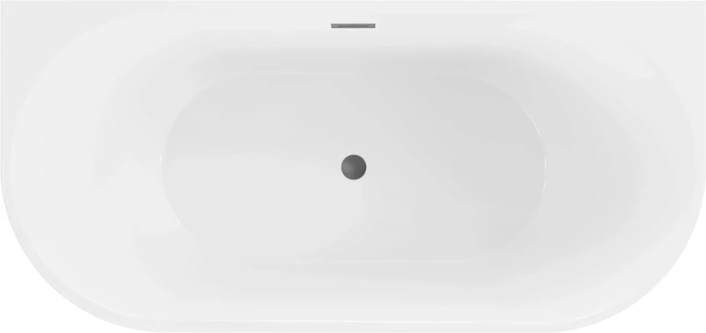 Volně stojící oválná akrylátová vana s instalací ke stěně série OVAL od výrobce MEXEN s přepadem a umístěném odpadu na středu vany.