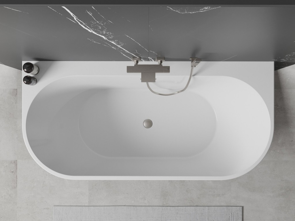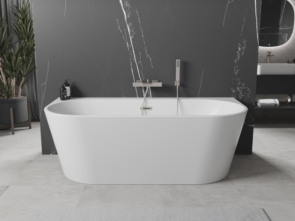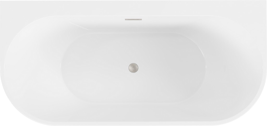 Volně stojící nástěnná vana Mexen Oval+ o rozměrech 170 x 80 cm a výšce 58 cm je elegantním prvkem koupelny. Vyrobeno ze sanitárního akrylátu, je odolné vůči zašednutí a UV záření. Bílá vana s přepadem z broušeného niklu má oválný tvar a hladký lesklý povrch. Sada obsahuje sifon a zátku click-clack. Ideální pro montáž na stěnu, bez otvoru pro baterii, s odtokem uprostřed.