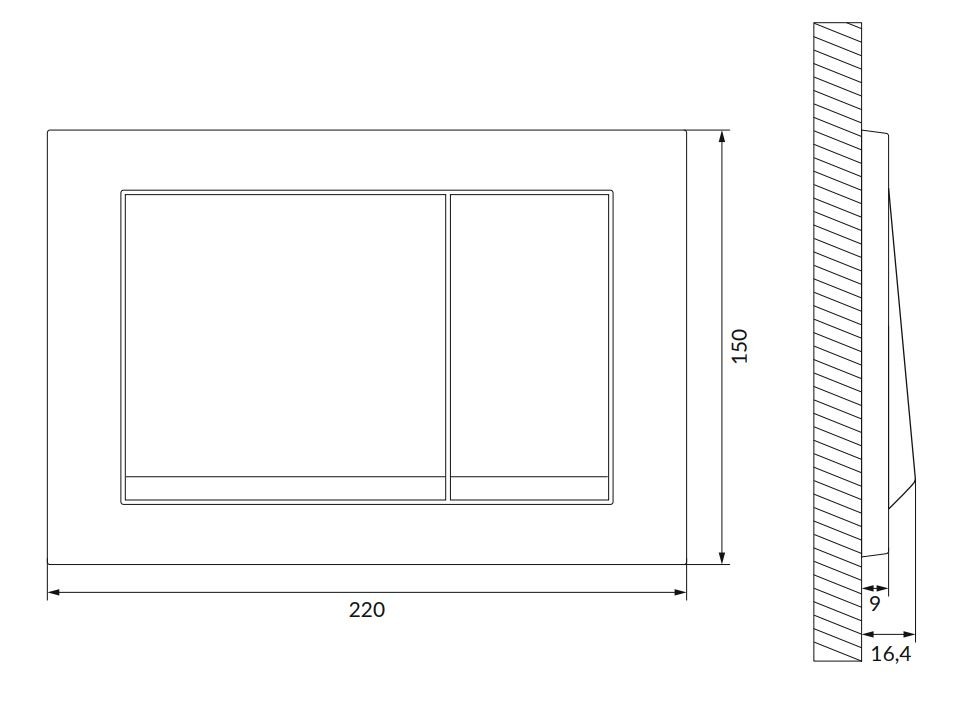 Dvoučinné plastové tlačítko ENTER II je určeno na zapuštěné rámy AQUA MECH k systémům K97-524; K97-526; K97-525.