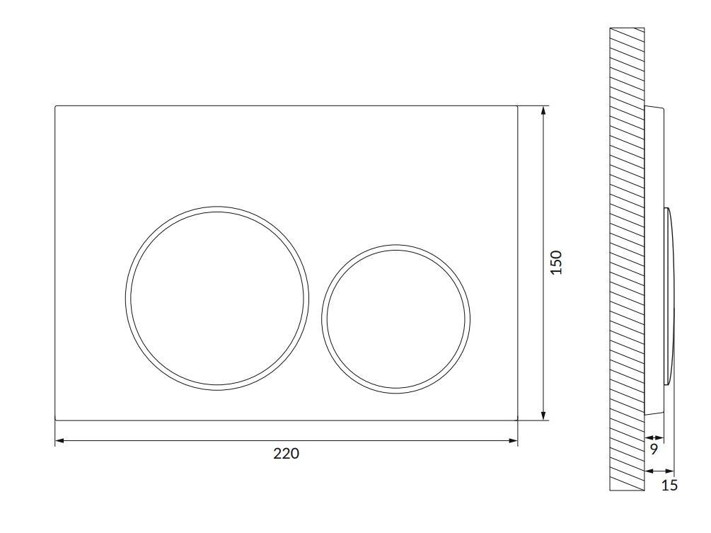Dvoučinné plastové tlačítko LUNA by Cersanit je určeno na zapuštěné rámy AQUA MECH k systémům K97-524; K97-526; K97-525.