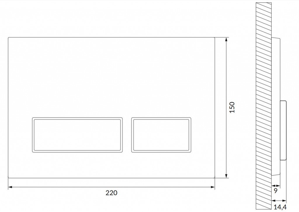 Dvoučinné plastové tlačítko MOVI II je určeno na zapuštěné rámy AQUA MECH k systémům K97-524; K97-526; K97-525.