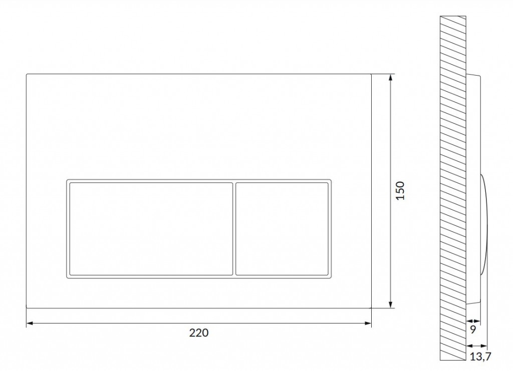Dvoučinné plastové tlačítko PRESTO II je určeno na zapuštěné rámy AQUA MECH k systémům K97-524; K97-526; K97-525.