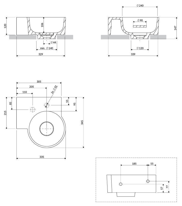 | Instalace | v případě instalace na pracovní desku je nutné v pracovní desce vyříznout kruh o průměru 140 mm |