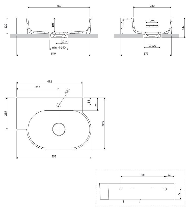 Umyvadlo z kolekce OMNIRES OVO se vyznačuje minimalistickým, expresivním tvarem s dokonalými proporcemi. Hravá geometrie vytváří oválnou mísu v kombinaci s funkční obdélníkovou poličkou – ideální místo pro montáž baterie, ale i pro uložení kosmetiky a dalších nezbytných doplňků. Harmonicky profilované stěny jsou zakončeny plochým okrajem, který zdůrazňuje tvar, zatímco perfektně padnoucí kryt odtoku zaručuje nejvyšší estetiku. Na spodní straně umyvadla je navrženo decentní, z výroby zastíněné místo, které označuje umístění otvoru pro baterii.