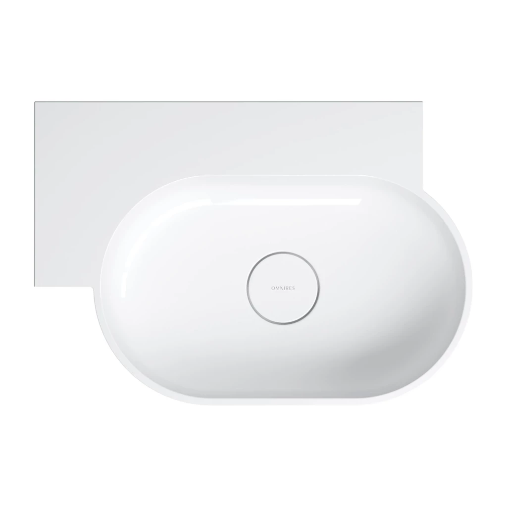 Umyvadlo z kolekce OMNIRES OVO se vyznačuje minimalistickým, expresivním tvarem s dokonalými proporcemi. Hravá geometrie vytváří oválnou mísu v kombinaci s funkční obdélníkovou poličkou – ideální místo pro montáž baterie, ale i pro uložení kosmetiky a dalších nezbytných doplňků. Harmonicky profilované stěny jsou zakončeny plochým okrajem, který zdůrazňuje tvar, zatímco perfektně padnoucí kryt odtoku zaručuje nejvyšší estetiku. Na spodní straně umyvadla je navrženo decentní, z výroby zastíněné místo, které označuje umístění otvoru pro baterii.