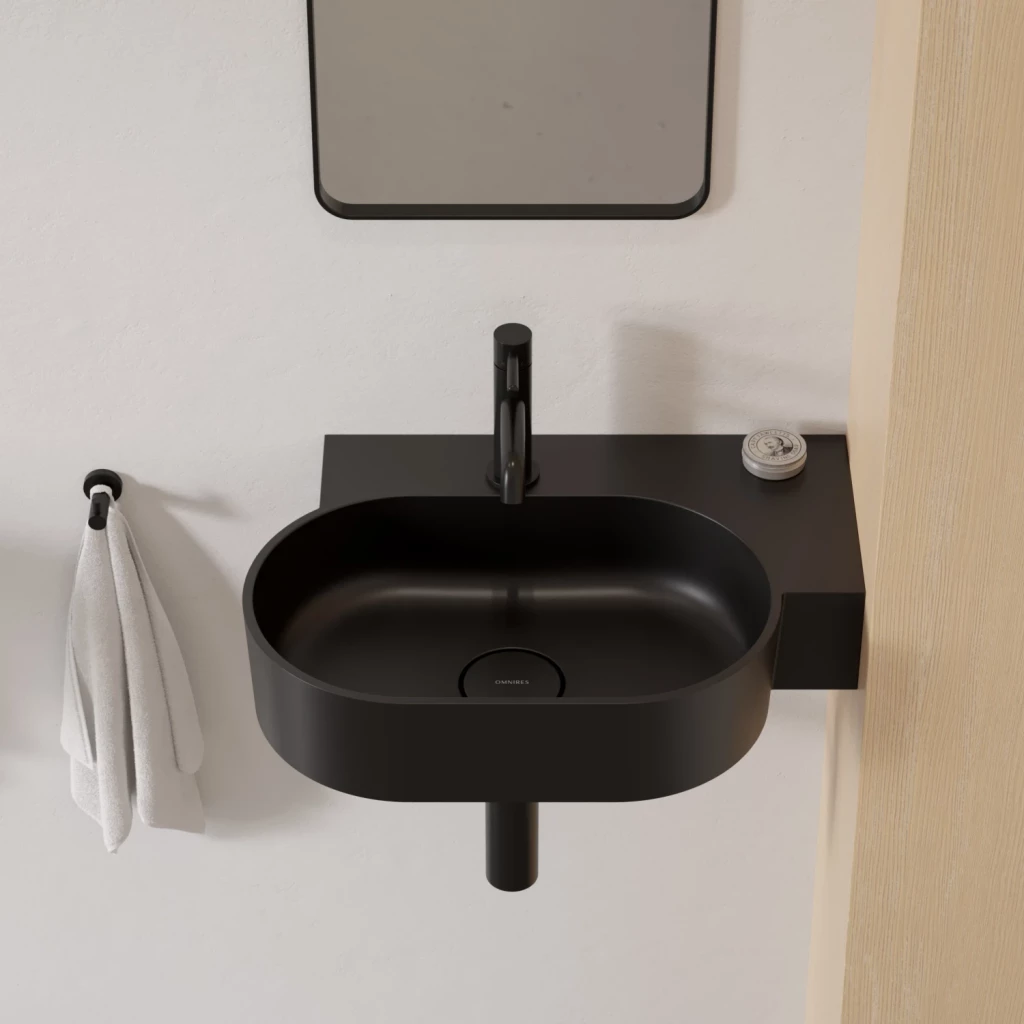 OVO v černé lávové barvě (RAL9005) je umyvadlo ve výrazném odstínu černé s matným povrchem, který je sametový na dotek.