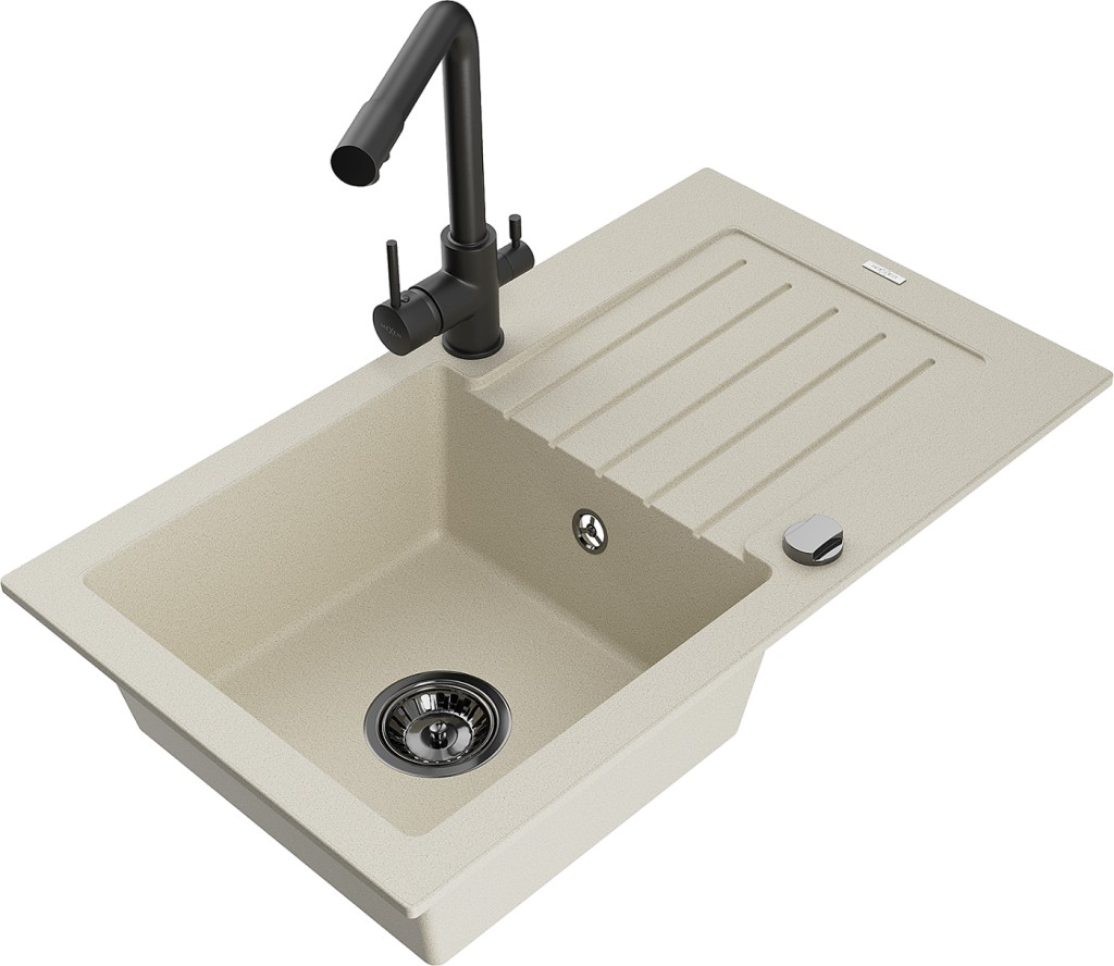 Speciální složení materiálu použitého pro výrobu je žula (80% žula – kámen, 20% pryskyřice) a jeho vysoká hustota garantuje bezpečné používání výrobku, a proto jsou granitové dřezy tak oblíbené. Díky povrchové úpravě nejsou na granitovém dřezu vidět zaschlé kapky, je odolný vůči skvrnám a neztrácí barvu. Povrch je odolný vůči nárazu, poškrábání, změně barvy, vysoké teplotě a teplotním šokům. Při jejich údržbě se používají obvyklé čistící prostředky nebo prostředky na nádobí s jemným abrasivem. Výhodou je rozmanitá barevná nabídka.