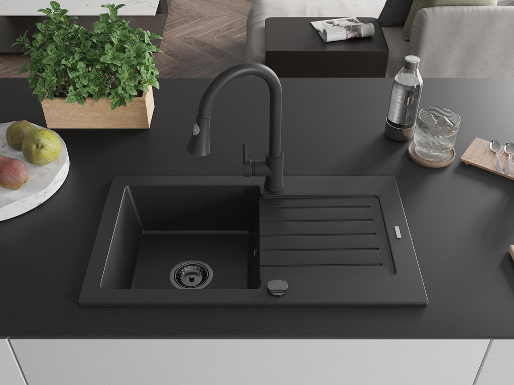 Aby vám dřezová baterie dlouho vydržela, výrobce MEXEN použil na tělo mosaz té nejvyšší kvality. Ta zajišťuje přirozenou stabilitu a dlouhou životnost. Samotné ovládání proudu vody vyřešil keramickou kartuší, kterou jen tak neopotřebujete. Výška baterie Elia je 380 mm a její výhodou je výsuvný výtok, který v praxi určitě oceníte. Baterie má 2 režimy: obyčejný tok a sprcha. Proud vody může být volně změněn a přizpůsoben individuálním potřebám. Tímto způsobem bude mytí nádobí ještě snazší, pohodlnější a efektivnější.