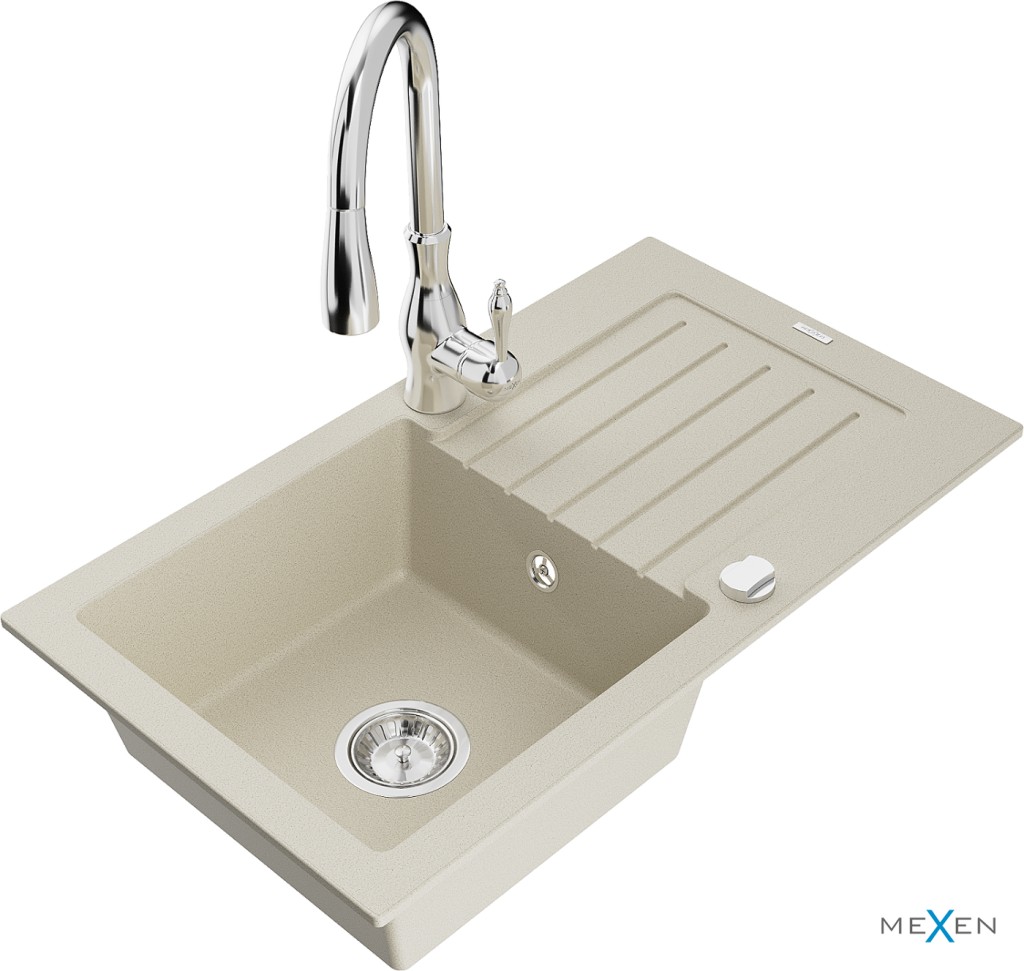 MEXEN/S - Pablo granitový dřez 1 s odkapávačem včetně baterie Savita, béžová (6510-69-672601-00)