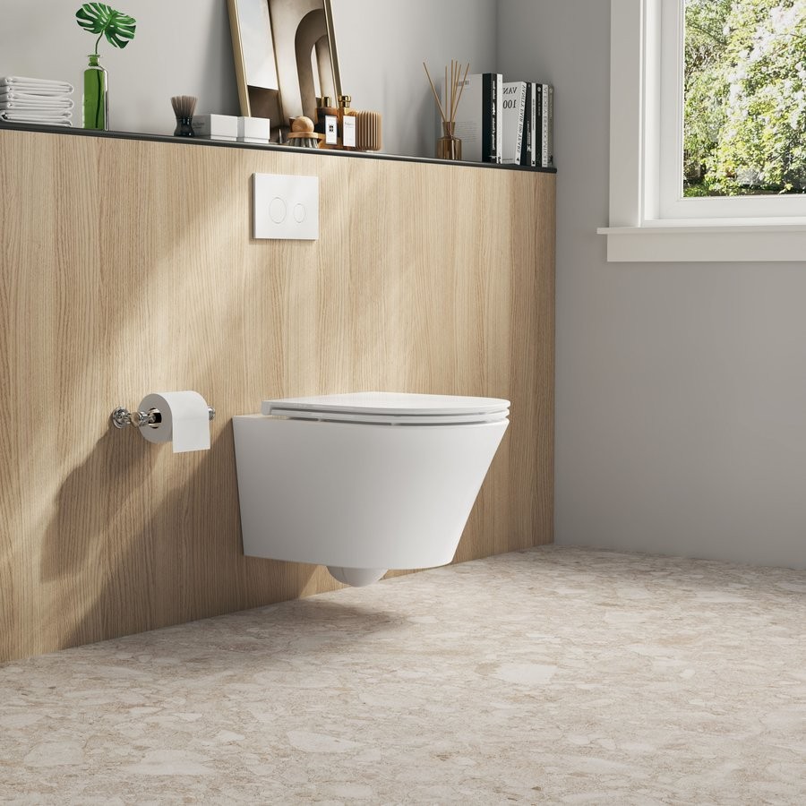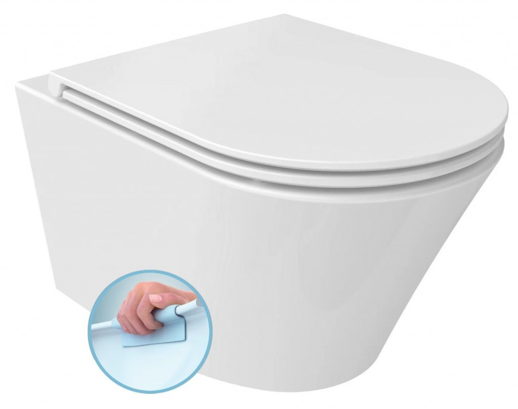 Rimless (NoRim) – toalety bez tradičního oplachového kruhu. Hladký povrch bez dutin a záhybů. Oplachová voda vytéká rozdělovačem vody pouze ze zadní části WC mísy a díky speciálnímu tvaru keramiky dokonale opláchne vnitřní prostor. Výhodou je snadná údržba a čištění WC mísy.