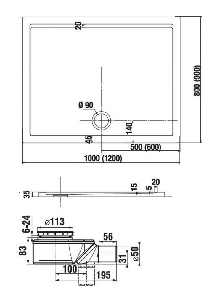- rozměr 1000 x 900 x 35 mm