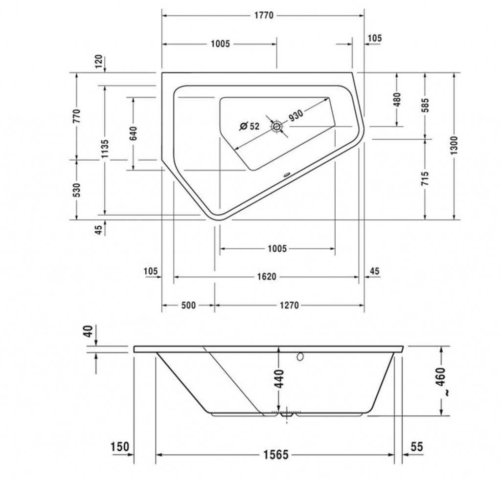 - odtokový otvor průměr 52 mm