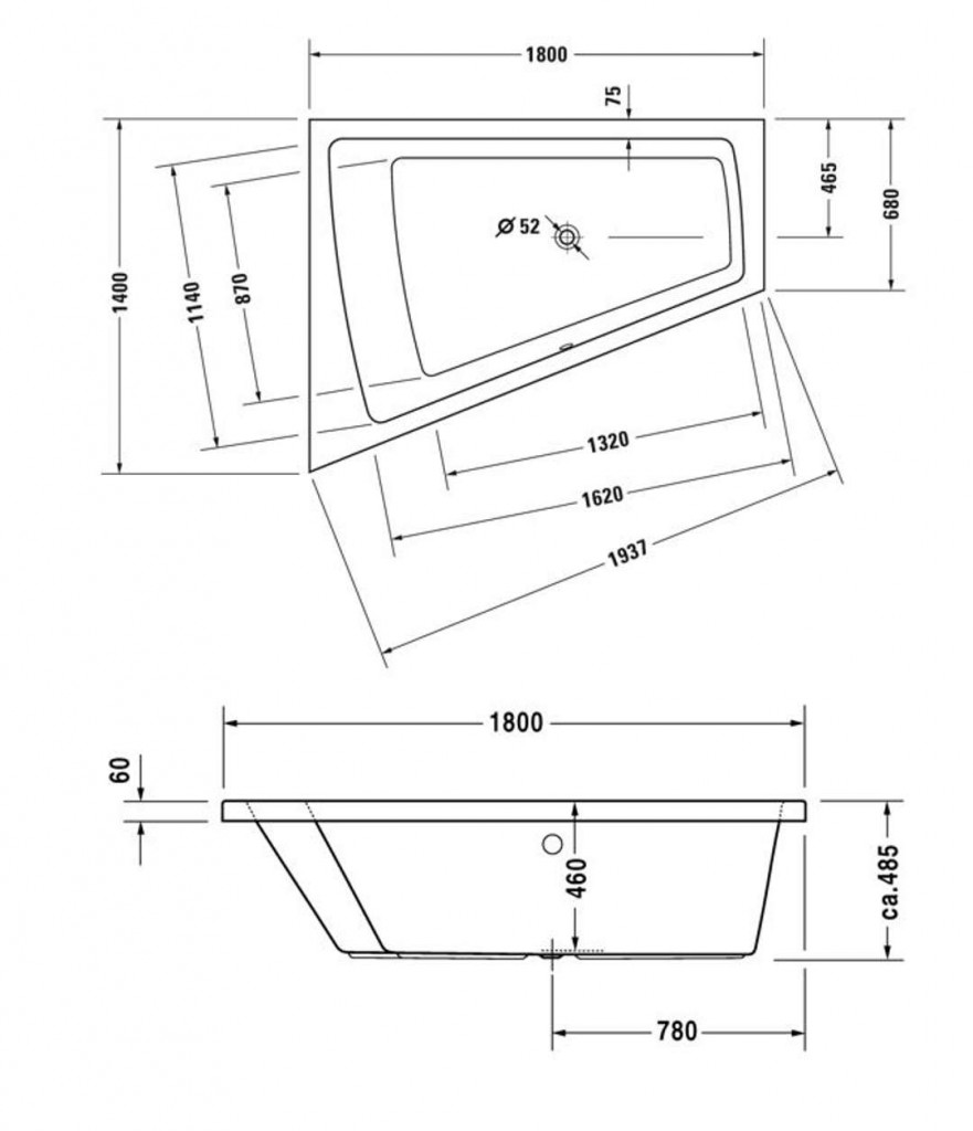 Odtoková souprava ani podpora vany nejsou součástí balení, nutné dokoupit zvlášť.
