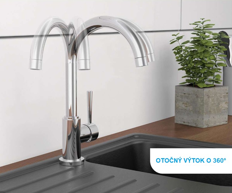 Otočný výtok o 360° – maximální flexibilita a pohodlí, vhodný i pro dvojdřezy.