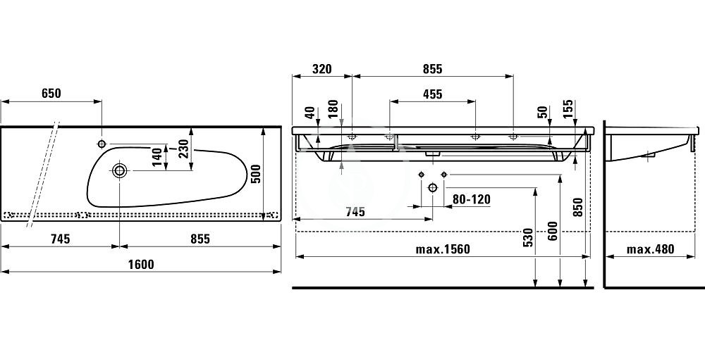 Umyvadlo Palomba Collection s odkládací plochou vlevo
