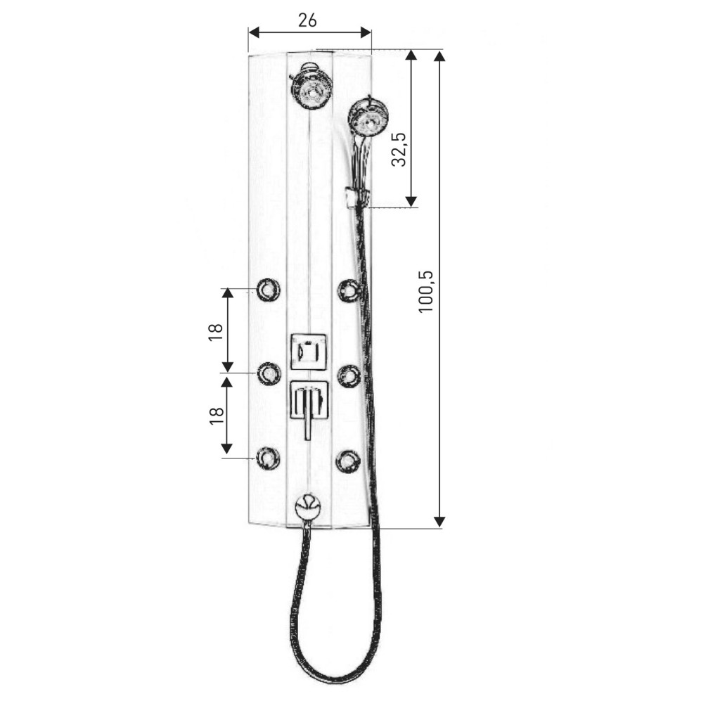 Hydromasážní sprchový panel Moonlight v saténovém provedení je moderním a funkčním doplňkem pro každou koupelnu. Vyrobený z odolného PVC materiálu nabízí kompaktní rozměry (101 × 26,5 × 19 cm) a je vhodný jak pro nástěnnou, tak rohovou instalaci.