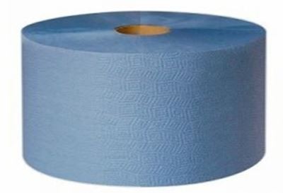 Papírové utěrky modré, 2-vrstvé, perforované, plošně ražené, materiál 100 % recyklovaný papír z vybraných surovin, vysoká schopnost vstřebávání tekutin, např., olej, voda.
