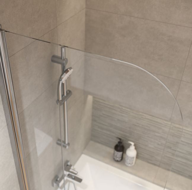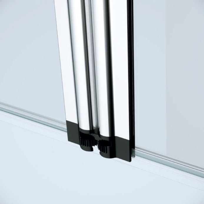 Vanová zástěna s dvěmi křídly je vyrobena z tvrzeného skla, má zaoblený horní roh a s obou stran je pokryta ochrannou vrstvou CleanPro, která usnadňuje čištění a chrání před usazeninami vodního kamene a otisky prstů.