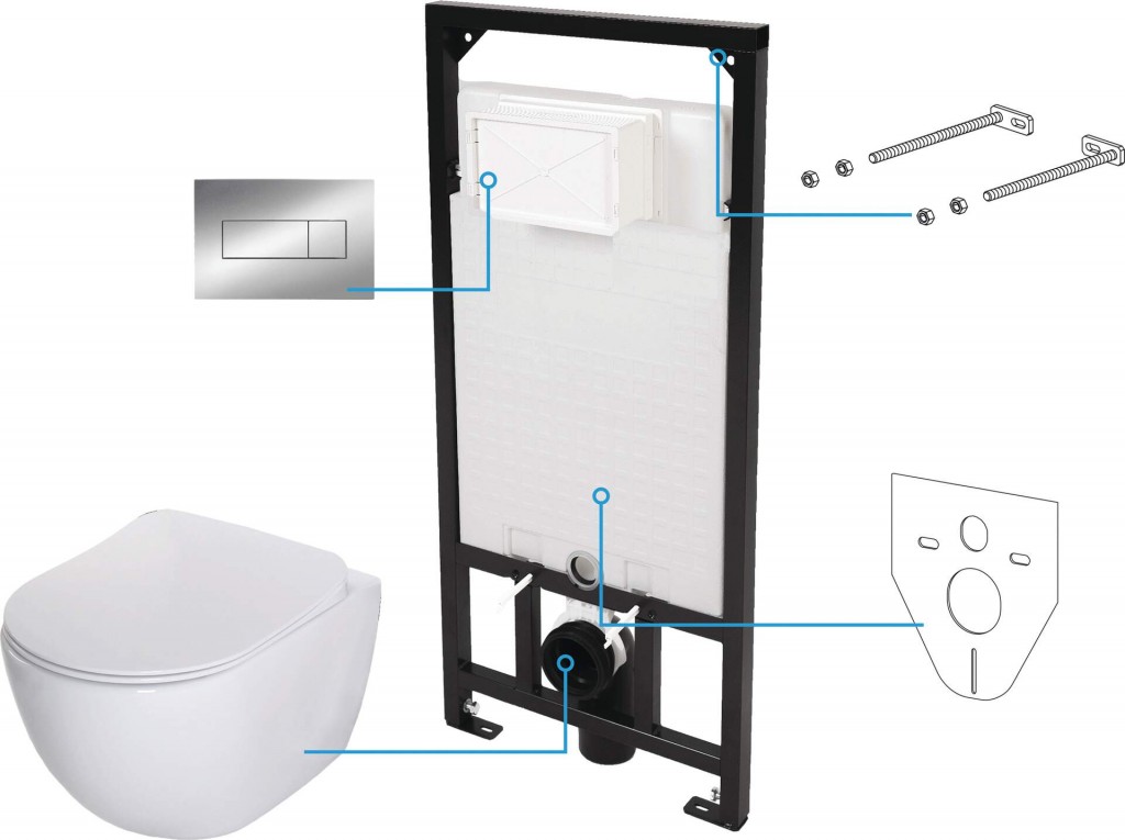 - Určeno pro instalaci s mechanickým podomítkovým rámem s nastavením vypouštěcího ventilu 3/6 l