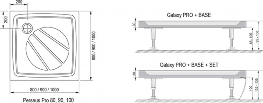 Čtvercová extra plochá sprchová vanička Perseus Pro-100