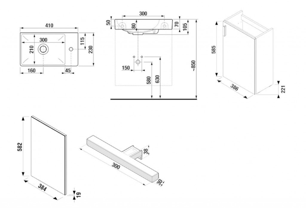 - rozměry skříňky vč. umývátka: 410 x 655 x 230 mm