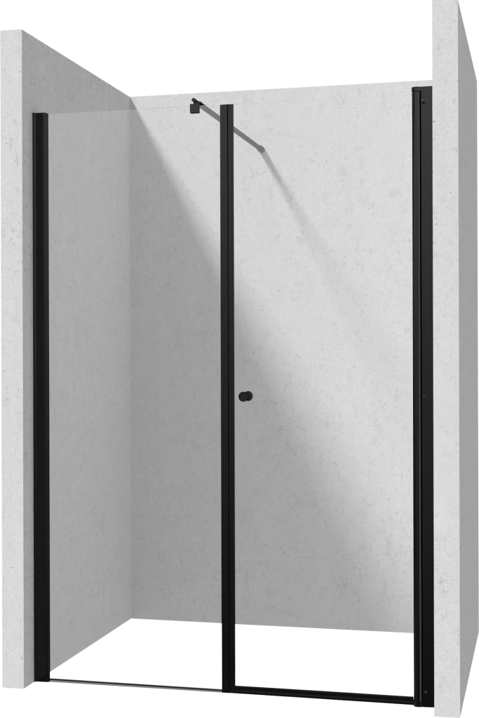 Sprchové křídlové dveře KERRIA PLUS s otvíráním dovnitř i ven a pevnou stěnou výšky 2000 mm. Jako výplň je použito transparentní sklo o síle 6 mm, které je podrobeno procesem kalení, kdy se sklo stává tvrdším, pružnějším a odolnějším. Sprchová zástěna je pokryta vrstvou Active Cover, která má hydrofobní vlastnosti. Nejsou zde žádné nevzhledné skvrny a čištění není potřeba tak často. V nabídce jsou rámy chromové nebo v matném černém provedení.