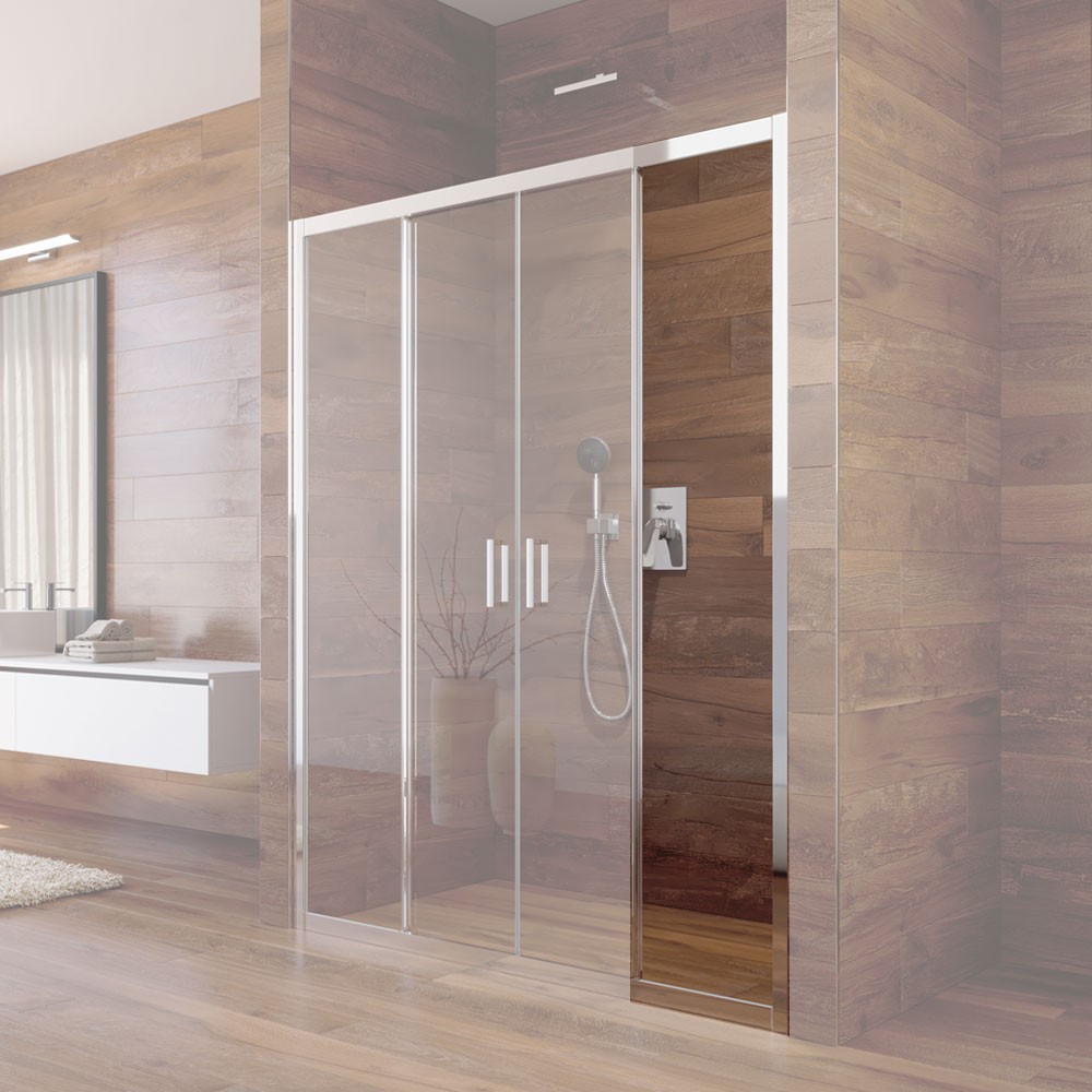 Pevný díl s profilem a těsněním pro CK80443K, 140x190 cm, sklo čiré, chrom ALU