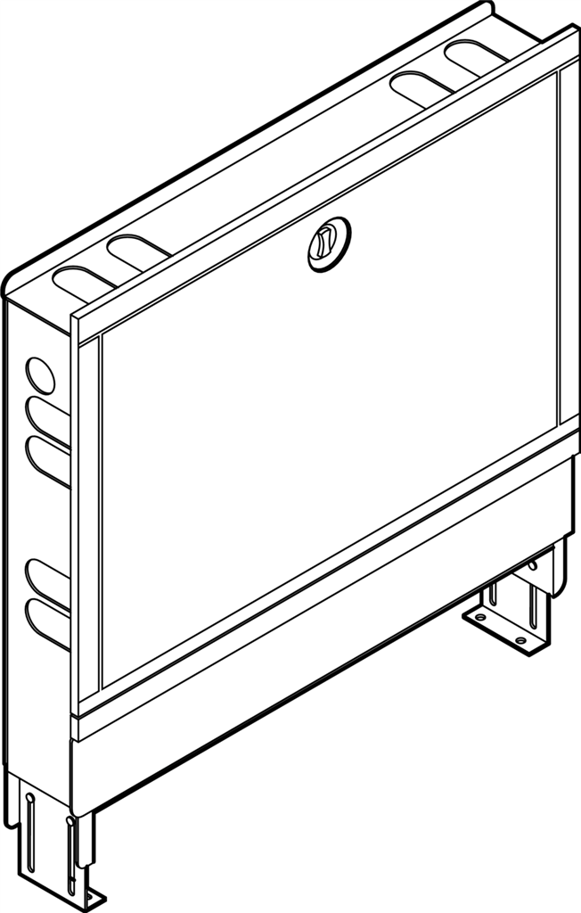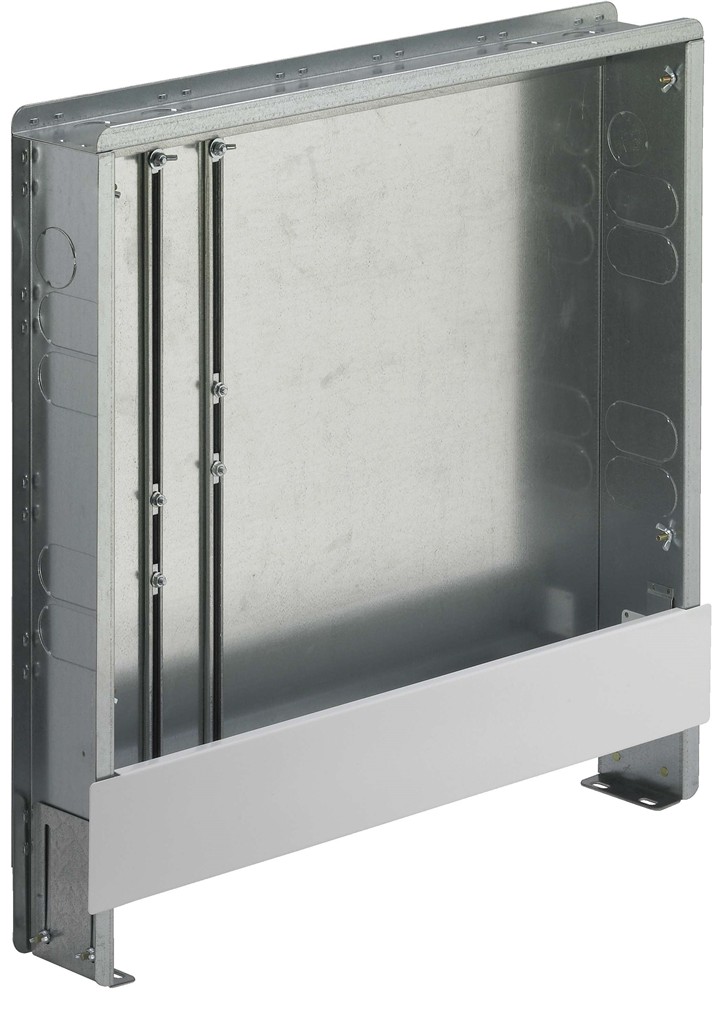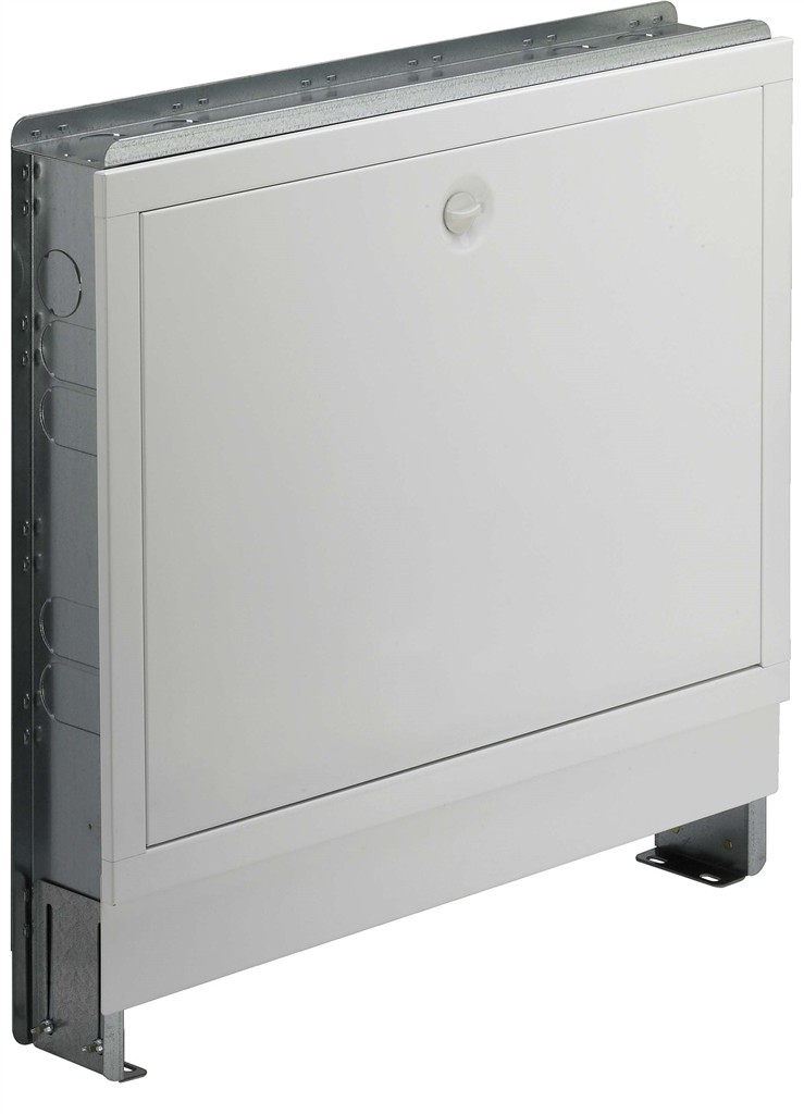 rám a dviřka, odnímatelné záslepky pro bezpečnější vedení trubek v oblasti připojení, univerzální držák pro rozdělovač topných okruhů
