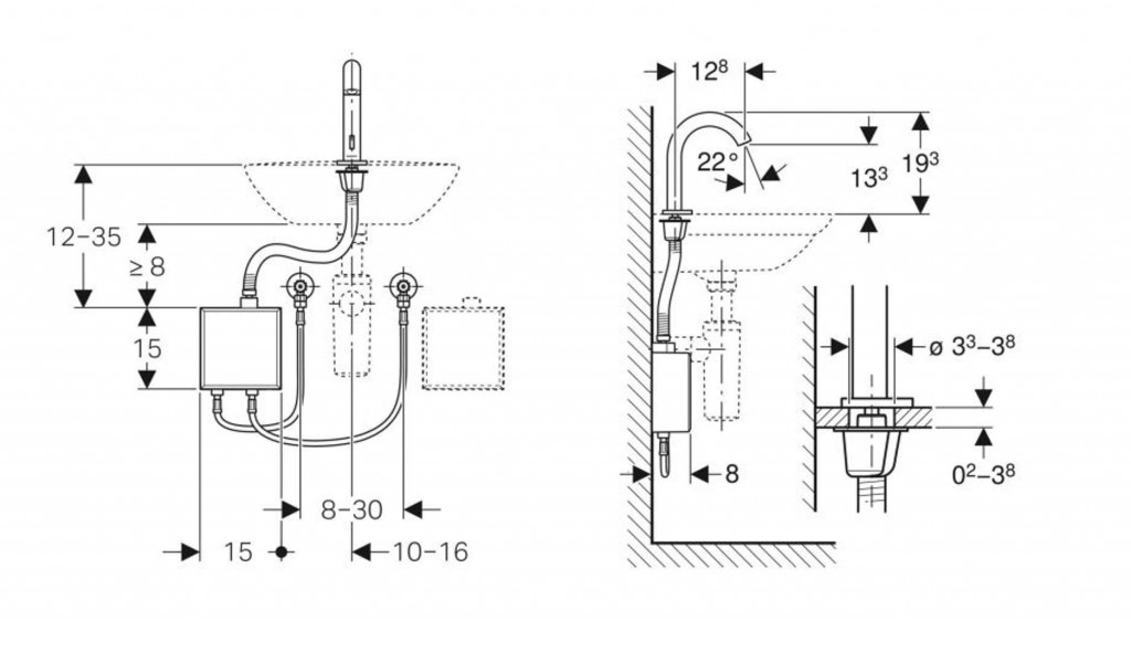 - umyvadlová baterie s infračerveným senzorem a hadicí pro přívod vod