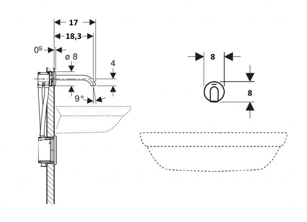 - K montáži do instalačních prvků Geberit pro umyvadlo, nástěnná armatura s funkčním boxem pod omítku