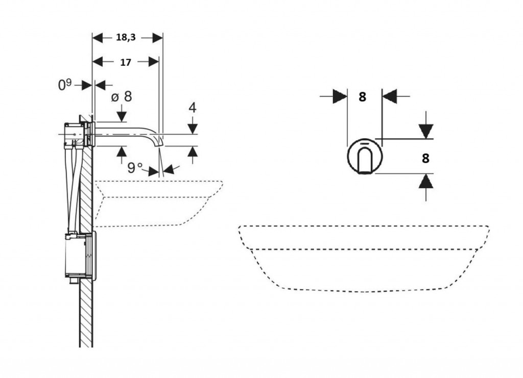 - K montáži do instalačních prvků Geberit pro umyvadlo, nástěnná armatura s funkčním boxem pod omítku