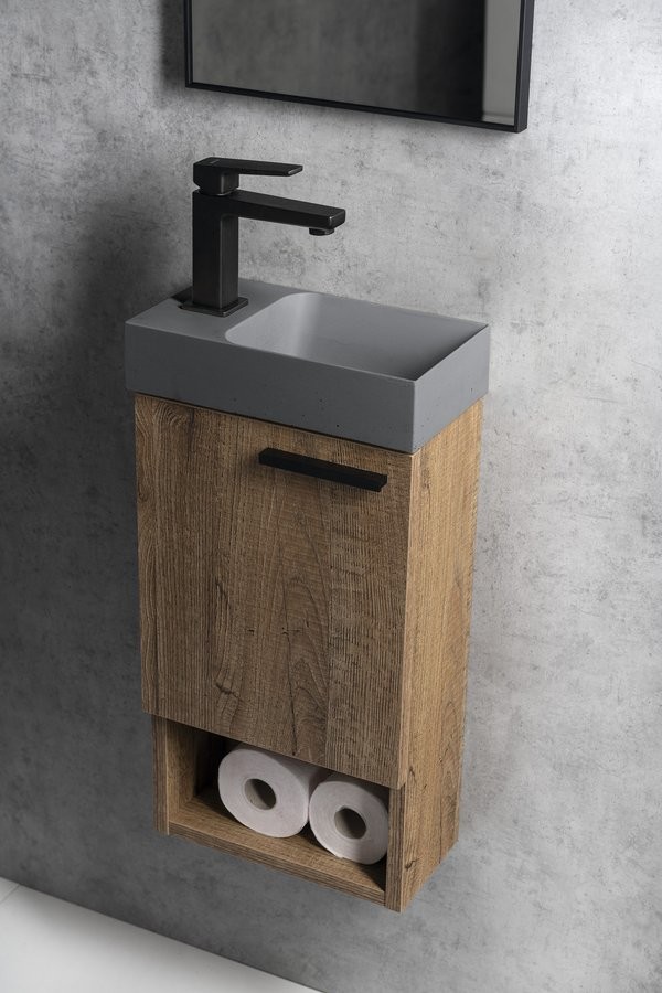 SAPHO - PICCOLINO betonové umývátko 30,8x17cm, baterie vlevo, šedá mat (PK30017)