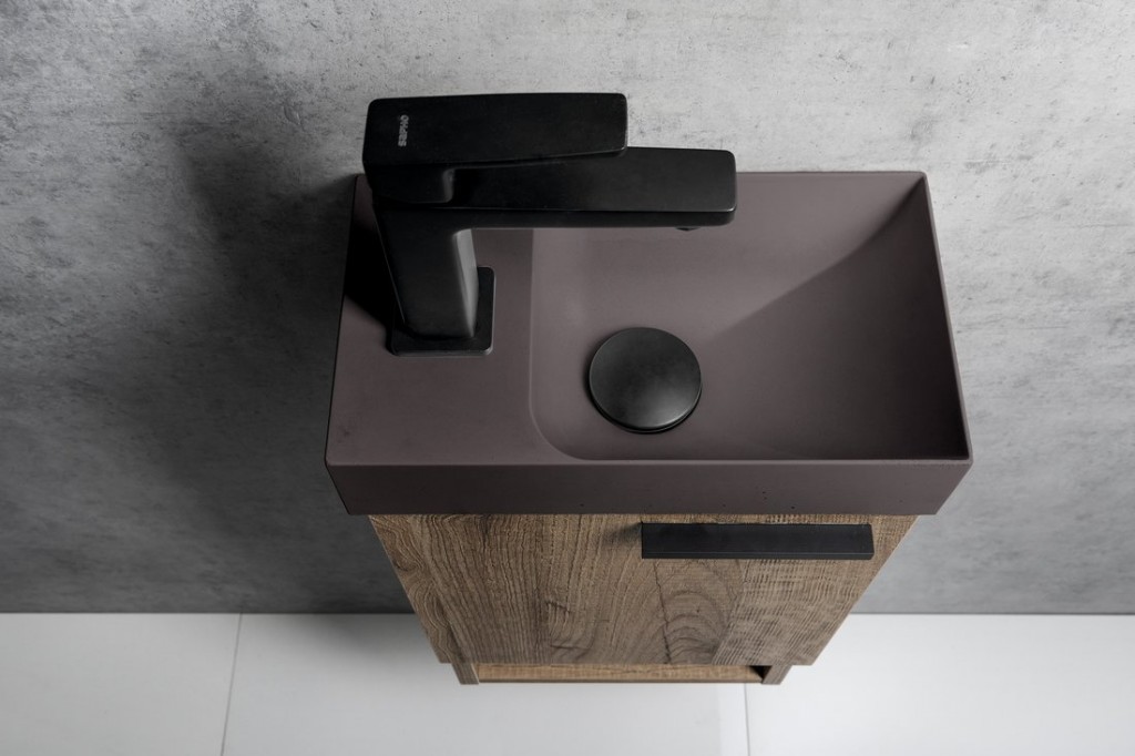 SAPHO - PICCOLINO betonové umývátko 30,8x17cm, baterie vlevo, tmavě hnědá mat (PK30015)