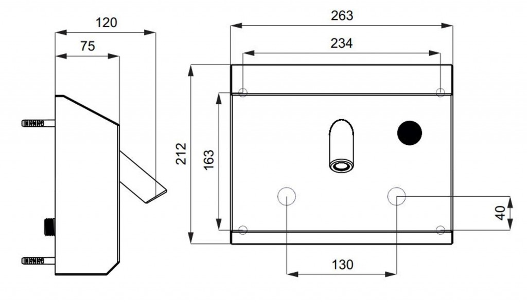 - nerezový kryt s výtokovým ramínkem, elektronikou, elektromagnetickým ventilem