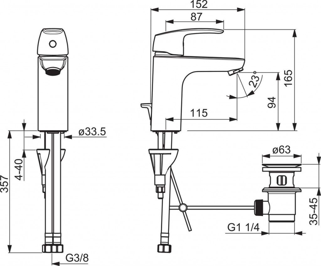 Páková umyvadlová baterie Pinto XL, s odtokovou soupravou