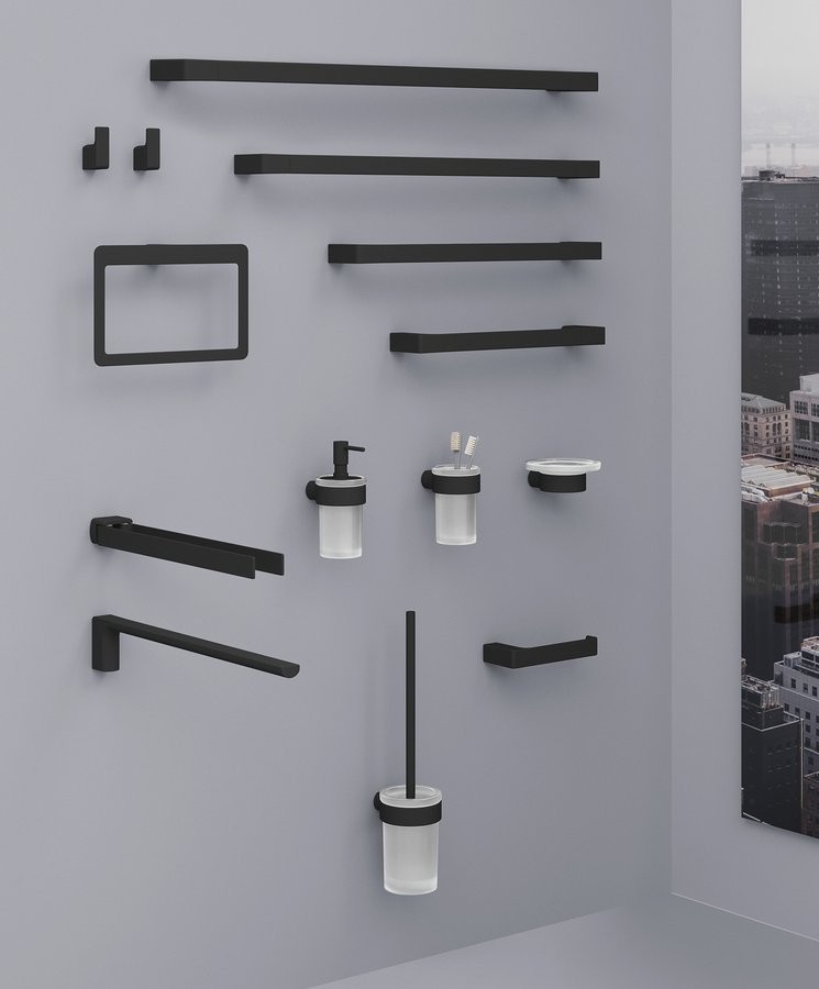 Snad inspirován pohledem na krásu Pyrenejí navrhl designér sérii doplňků PIRENEI. Masivní základna, kombinace přímých linií a zaoblených hran je spojením elegance a majestátnosti. Na výběr jsou doplňky v provedení v chromové, matné černé, matné bílé, gun metal, zlaté a matné zlaté variantě.