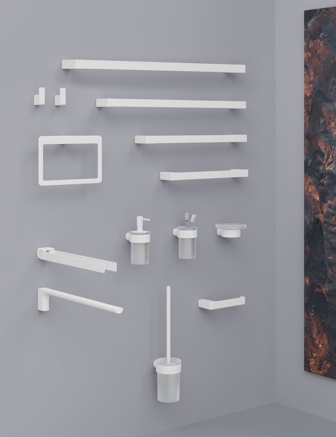 Snad inspirován pohledem na krásu Pyrenejí navrhl designér sérii doplňků PIRENEI. Masivní základna, kombinace přímých linií a zaoblených hran je spojením elegance a majestátnosti. Na výběr jsou doplňky v provedení v chromové, matné černé, matné bílé, gun metal, zlaté a matné zlaté variantě.