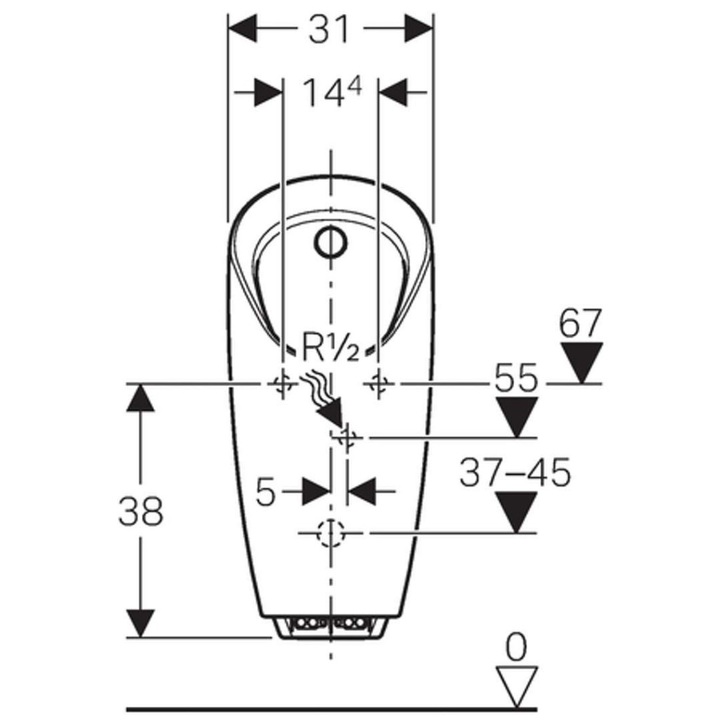 Pro pozdější přestavbu na provoz se splachováním je třeba předem naplánovat potrubí okruhu. Vyhněte se slepému vedení. Pro montáž a demontáž ovládání splachování pisoárů bez sejmutí keramické mísy musí být výška hubice minimálně 55 cm nad hotovou podlahou.
