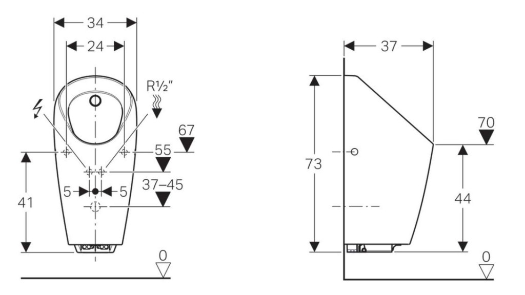 Pro montáž a demontáž ovládání splachování pisoárů bez sejmutí keramické mísy musí být výška hubice minimálně 58 cm nad hotovou podlahou.