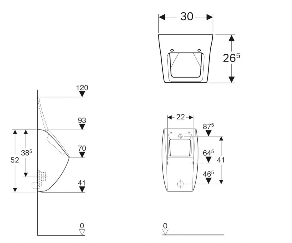 - otvory pro umístění víka pisoáru