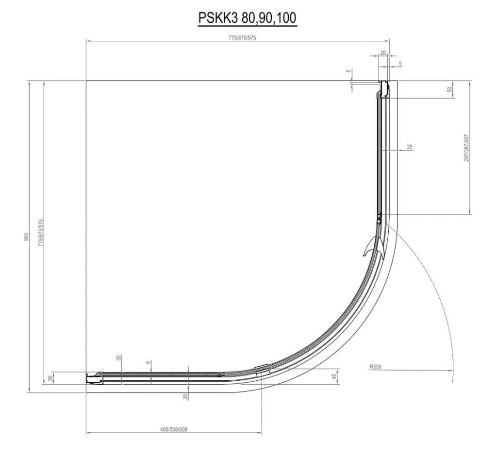 Čtvrtkruhový sprchový kout PSKK3-100, s otočnými dveřmi