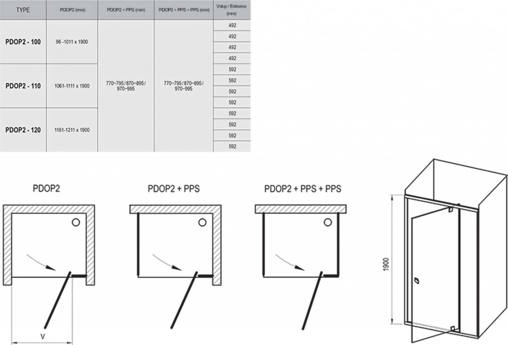 Sprchové pivotové dveře PDOP2-110