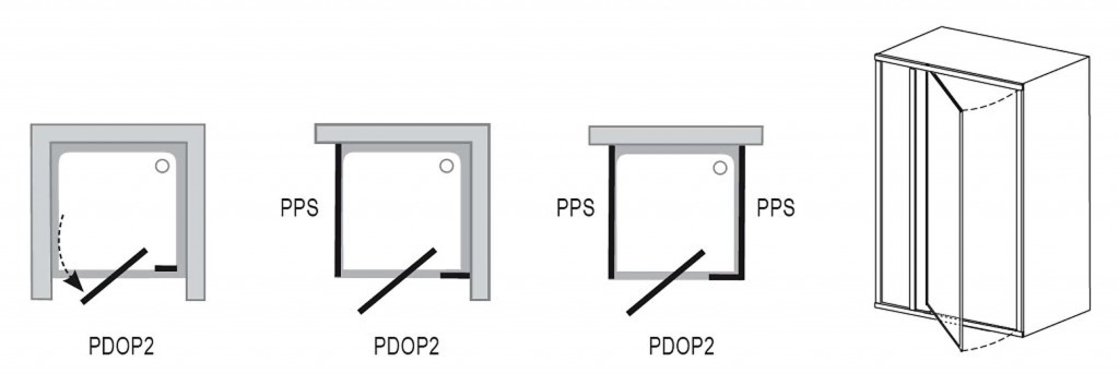 - montáž do obloženého rohu na sprchovou vaničku nebo přímo na podlahu se zabudovaným odtokovým žlabem či podlahovou vpustí