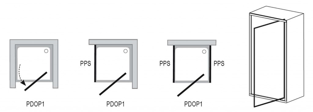 - montáž do obloženého rohu na sprchovou vaničku nebo přímo na podlahu se zabudovaným odtokovým žlabem či podlahovou vpustí